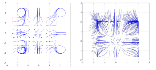 貴大新聞網(wǎng)訊(數(shù)學(xué)與統(tǒng)計學(xué)院)近日,國家天元數(shù)學(xué)西南中心貴州基地/貴州省數(shù)據(jù)驅(qū)動建模學(xué)習(xí)與優(yōu)化創(chuàng)新人才團隊、貴州大學(xué)數(shù)學(xué)與統(tǒng)計學(xué)院王錦榮教授團隊教師歐世勤以第一作者在計算機領(lǐng)域頂級期刊 IEEE Transactions on Fuzzy Systems 等期刊發(fā)表神經(jīng)網(wǎng)絡(luò)系列學(xué)術(shù)論文,為相關(guān)領(lǐng)域的研究提供了新的理論和方法。針對模糊神經(jīng)網(wǎng)絡(luò),給出了狀態(tài)依賴切換機制構(gòu)建了狀態(tài)依賴切換模糊神經(jīng)網(wǎng)絡(luò)模型,探討了系統(tǒng)參數(shù)在狀態(tài)依賴切換下多穩(wěn)定性和固定時間多穩(wěn)定性問題,旨在為神經(jīng)網(wǎng)絡(luò)在聯(lián)想記憶中的應(yīng)用提供理論依據(jù)。研究結(jié)果表明狀態(tài)依賴切換機制會導(dǎo)致系統(tǒng)的平衡態(tài)增加,使之在聯(lián)想記憶應(yīng)用中比傳統(tǒng)未切換的神經(jīng)網(wǎng)絡(luò)模型有更大的儲存容量。進一步考慮系統(tǒng)參數(shù)具有概周期性,得到了具有高斯激活函數(shù)的元切換模糊神經(jīng)網(wǎng)絡(luò)具有個穩(wěn)定的概周期解,下圖分別給出了具有高斯激活函數(shù)的2元切換神經(jīng)網(wǎng)絡(luò)在時變概周期參數(shù)與非時變參數(shù)下的相圖。此外,在系統(tǒng)實現(xiàn)多穩(wěn)態(tài)的基礎(chǔ)上,提出了多控制器組合控制策略以實現(xiàn)多個平衡態(tài)的固定時間收斂,建立了固定時間多概周期性、多周期性和多穩(wěn)定性的判定準(zhǔn)則,相關(guān)結(jié)果已投稿且被(IEEE Transact
